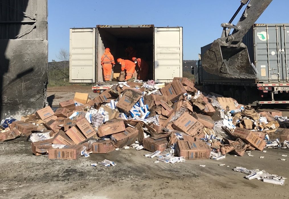 A través del Plan de Gestión de Mercancías Abandonadas e Incautadas que ejecuta la Aduana Regional de Talcahuano, se concretó a fines de octubre la destrucción de 845.542 cajetillas de cigarrillos de diversas marcas y orígenes que fueron decomisadas en procedimientos ejecutados en los puntos de control de las regiones del Maule, Ñuble, la Araucanía y Bio Bio.