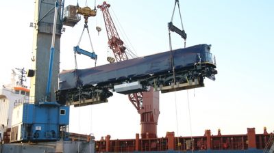 Las locomotoras llegaron al terminal a bordo de la Moto Nave BBC Orion y la operación fue realizada en simultáneo, con grúas Gottwald GHMK 6407 y Liebherr LHM600, en el sitio número 5 del terminal.