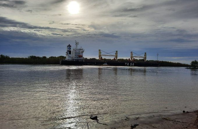 El navío había ingresado al recinto portuario el domingo 18 para cargar 33 mil toneladas de trigo con destino a Angola. El viernes 23, cuando intentó salir por el canal de acceso a la hidrovía, quedó impedido de navegar.