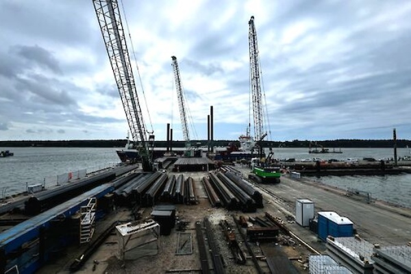 Su instalación es una etapa crucial en la construcción del atracadero. Sirven como la base que soporta, estabiliza y garantiza la resiliencia de los futuros muelles frente a las inclemencias del tiempo. Antes del inicio de estas obras, operaban barcazas en los muelles para realizar el dragado.