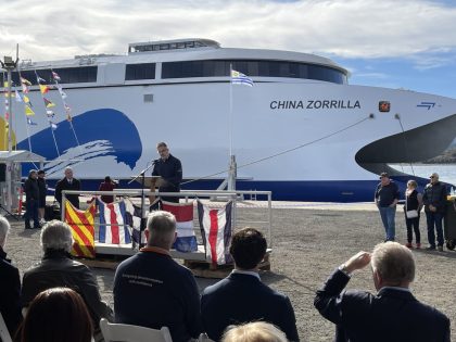 El astillero australiano Incat botó el ferry eléctrico llamado China Zorrilla, el que fue construido para Buquebus con el objetivo de unir Buenos Aires, Argentina, y Colonia, Uruguay.
