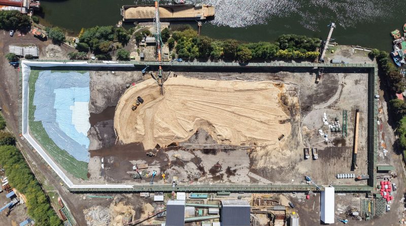 El delegado presidencial de la Región de Los Ríos, Jorge Alvial; el jefe de la División de Fomento e Industrias del Gobierno Regional, Eugenio Ortega; y la alcaldesa de Valdivia, Carla Amtmann, recorrieron junto al gerente general de Portuaria Corral, Diego Sprenger, las obras del proyecto Domo que se construye en el barrio Miraflores, en la capital regional. El proyecto se convertirá en el domo geodésico tipo air-supported más grande de América.