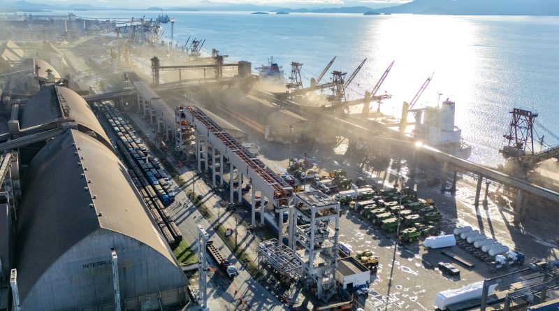 “Las cintas transportarán los materiales, conectando las terminales con la zona portuaria. Habrá 1,7 km de galerías transportadoras”, explicó Victor Kengo, Director de Ingeniería y Mantenimiento de Portos do Paraná.