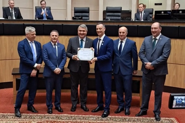 Gracias a su importante colaboración en la importación de fertilizantes, la Federación de Cooperativas Agropecuarias de Santa Catarina (Fecoagro) rindió homenaje al Puerto de São Francisco durante una sesión formal en la Asamblea Legislativa del Estado de Santa Catarina, en la que se celebró el 50º aniversario de la organización. El presidente Vieira recibió una placa en reconocimiento a los importantes servicios prestados a Fecoagro y al desarrollo de la agroindustria y las cooperativas agrícolas en Santa Catarina.