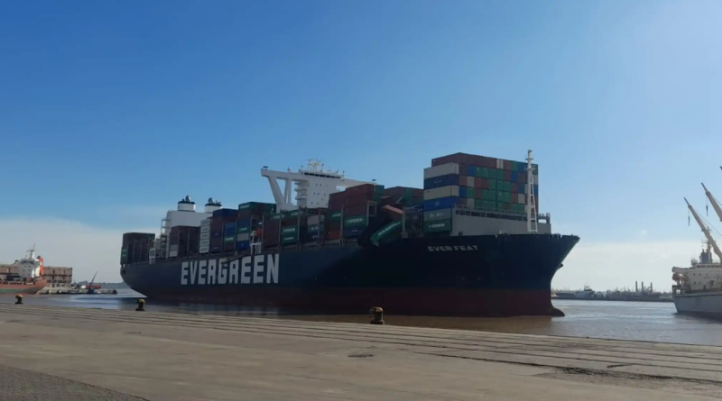 Buque de Evergreen arriba a Puerto de Montevideo con contenedores caídos