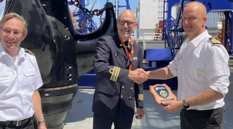 El bautizo tuvo lugar en la Terminal de Cruceros, en pleno centro de Rotterdam. La tripulación del buque recibió el escudo tradicional del puerto de manos de Ruud Hoogesteger, director de operaciones de la División de Capitanía de Puerto.