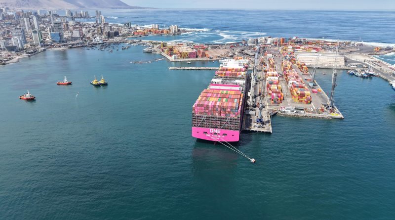Se contempla que la nave de nueva construcción de Ocean Network Express (ONE) permanezca en el recinto portuario iquiqueño hasta la tarde del viernes 10 de octubre, lo que permitirá movilizar 2.000 contenedores (800 para embarque y 1.200 para desembarque).