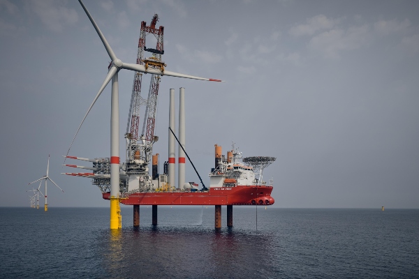 El buque instalador de plataformas autoelevables Vole au vent, de Jan de Nul, instaló la turbina eólica número 31 en el parque eólico marino EMYN de Îles d’Yeu et de Noirmoutier, en Francia.