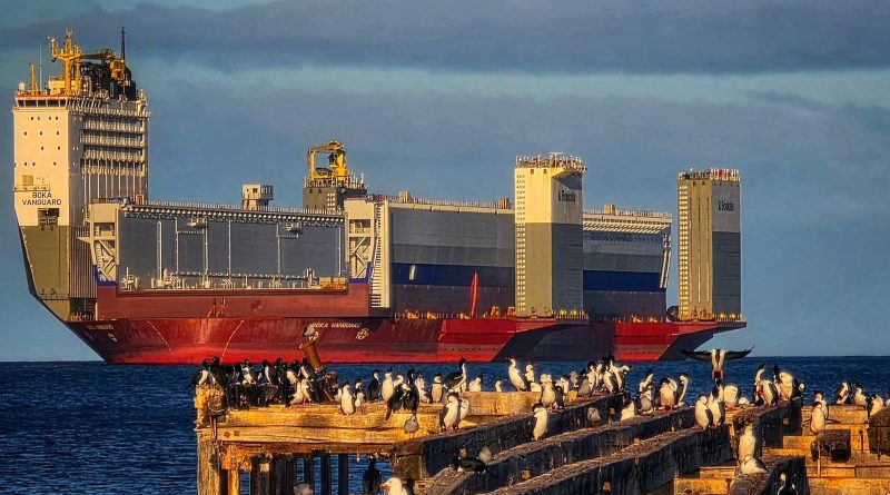 Boka Vanguard, el buque semisumergible más grande del mundo, se encuentra navegando aguas chilenas y, actualmente, está a la gira frente a Punta Arenas en una escala técnica.