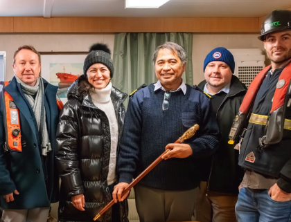 La instancia se trata de un evento muy esperado que tiene lugar al comienzo de cada nuevo año, donde se entrega un bastón con empuñadura de oro al capitán del primer barco internacional que llega.