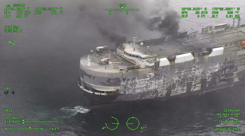 El car carrier Morning Midas se hundió en el Océano Pacífico Norte semanas después de que los miembros de la tripulación abandonaron el navío. Esto luego que no pudieran extinguir un incendio a bordo que dejó al navío a la gira.