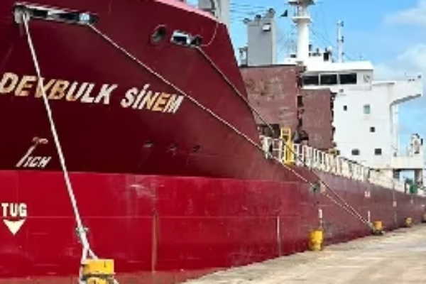 O cargueiro Devbulk Sínem com bandeira de Porto Rico, foi o responsável pelo transporte do produto que terá como destino a China.