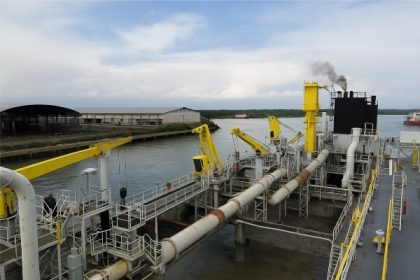 Otro logro de este mes fue la implementación en el puerto del primer descargador continuo autónomo de granos de desarrollo nacional. La máquina cuenta con una capacidad de descarga de 1.500 toneladas métricas por hora.