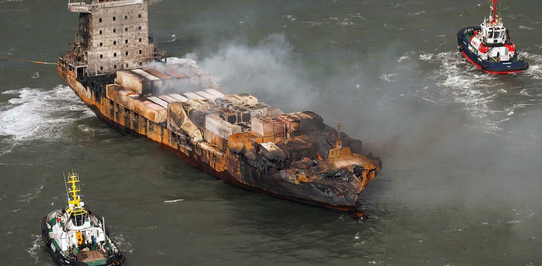 Portacontenedores Solong luego del incendio que le afectó tras chocar contra el petrolero estadounidense Stena Immaculate