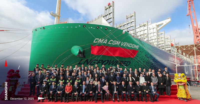 “Este buque de 23.000 TEU de combustible dual GNL ha sido oficialmente nombrado bajo el mando del Capitán Anton Tache, con la Sra. Feng Ping, vicepresidenta de Chery International, como madrina.Bajo bandera de Singapur, el CMA CGM Vendome navegará en nuestro servicio FAL3, uno de los principales corredores comerciales Asia–Europa del mundo”, indicó la naviera en su cuenta de LinkedIn.