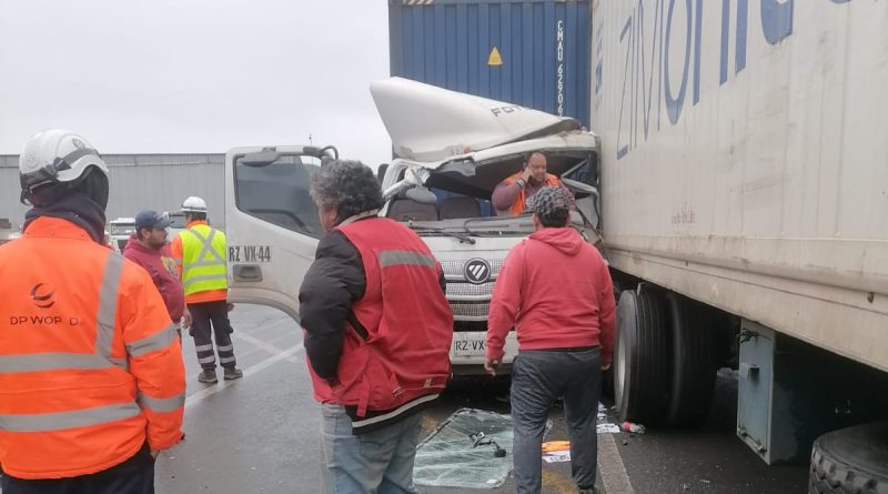 Una colisión por alcance entre dos camiones tuvo lugar al interior del terminal concesionado por DP World en el Puerto de San Antonio, lo que culminó con uno de los transportistas atrapado en la cabina del vehículo que manejaba.
