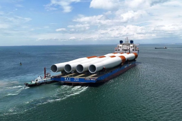 Como socio clave en la logística para proyectos globales renovables, MV Xiang Tai Kou, de Cosco Shipping Heavy Transport, cargó con éxito el primer lote de monopilotes eólicos marinos en CWHI (CNOOD-Wenchong Heavy Industries) astillero de Qinzhou y ahora está en camino al parque eólico Inch Cape Offshore Limited, de 1,1 GW en Escocia.