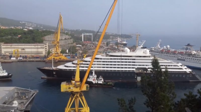 El crucero de expedición Scenic Eclipse abandonó las instalaciones del astillero Uljanik, donde fue construido, para dirigirse hasta el muelle de Viktor Lenac.