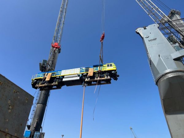 Ian Taylor agencia en Terminal Puerto Angamos nave con segunda descarga de locomotoras
