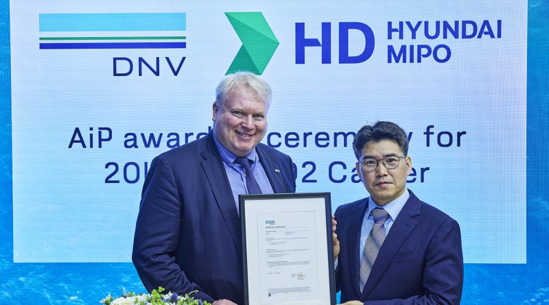 DNV entregó un Principio de Aprobación (AiP) a HD Hyundai Mipo para su buque transportador de dióxido de carbono licuado (LCO2) de 20.000 metros cúbicos.