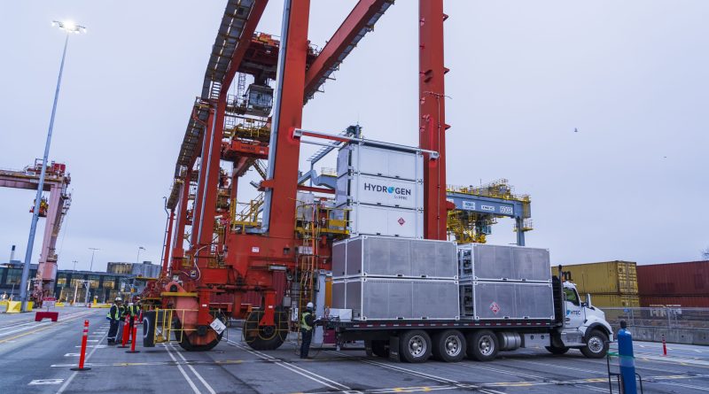 DP World completó las pruebas iniciales de su grúa RTG de pila de combustible de hidrógeno en el Puerto de Vancouver, lo que marca un hito significativo en la descarbonización de sus operaciones portuarias.