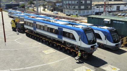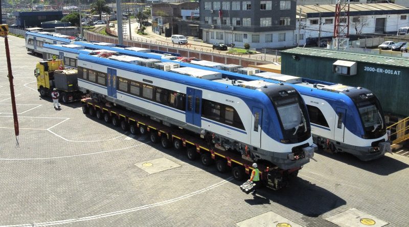 En el Terminal DP World del Puerto de San Antonio se concretó el desembarque de los cinco nuevos trenes que se sumarán a la flota del Metro de Valparaíso.