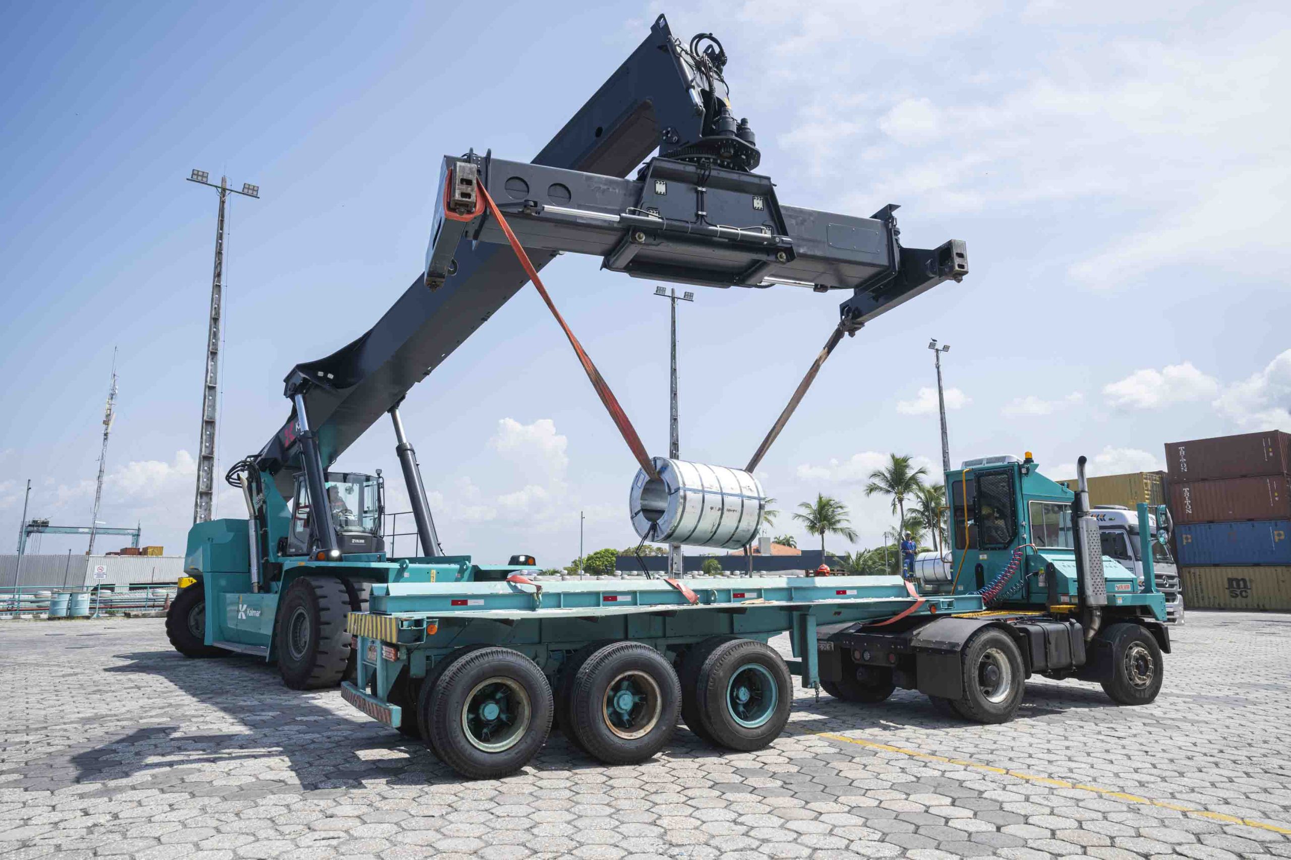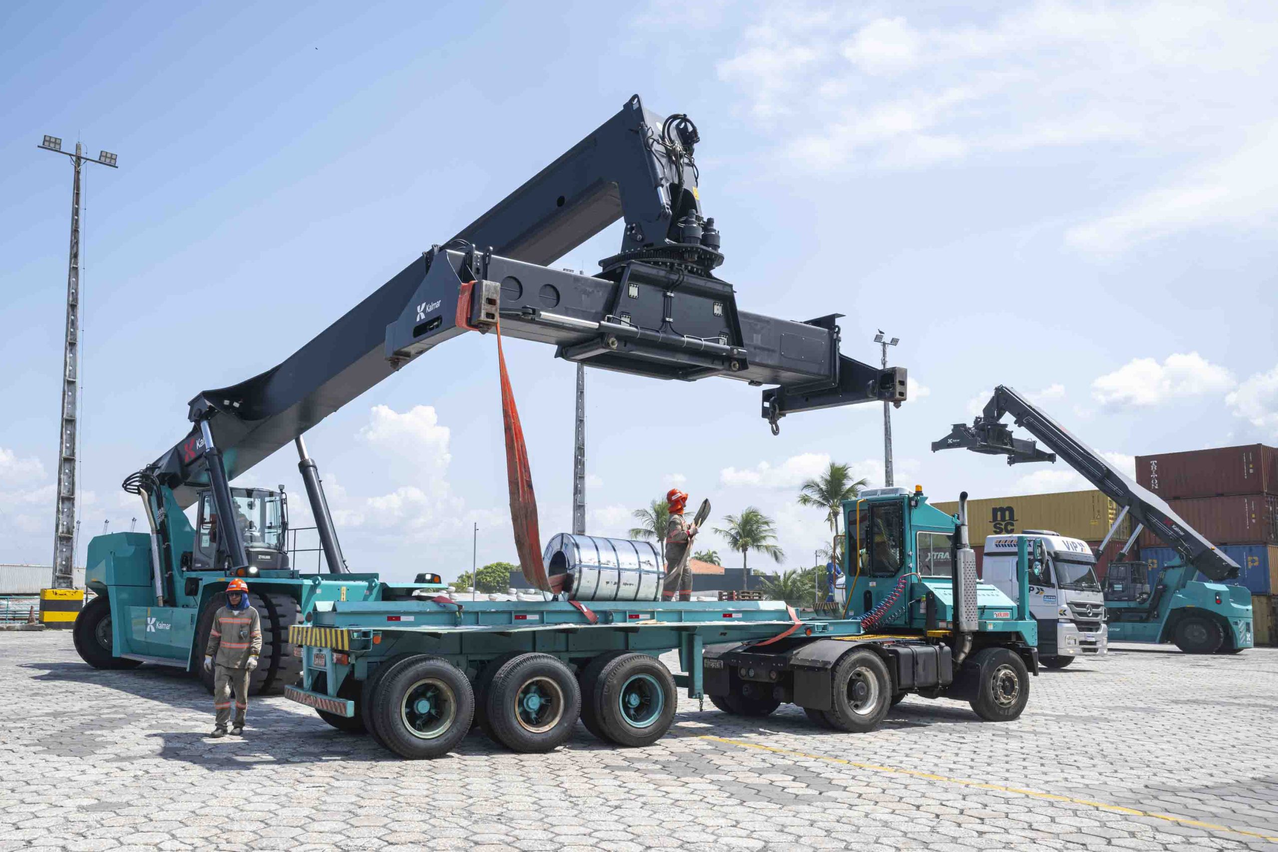 La modernización del puerto ha sido constante. Desde las primeras operaciones en 1996, pasando por la instalación de muelles en 2003, hasta la llegada de las primeras grúas en 2009 y la expansión actual a once equipos y 600 metros de muelle, con proyección a 720 metros, Super Terminais ha evolucionado con visión y audacia. “Kalmar es nuestra socia desde hace prácticamente 30 años. Estamos muy agradecidos con esta empresa. Ellos acompañaron nuestra evolución y nosotros acompañamos la de ellos también, incluso en lo que respecta a terminal tractors, stackers y empty handlers. El 100% de nuestros equipos son Kalmar. Conocemos la calidad del servicio, conocemos la calidad de los equipos y estamos muy orgullosos y honrados de tener esta alianza con una empresa tan destacada”.