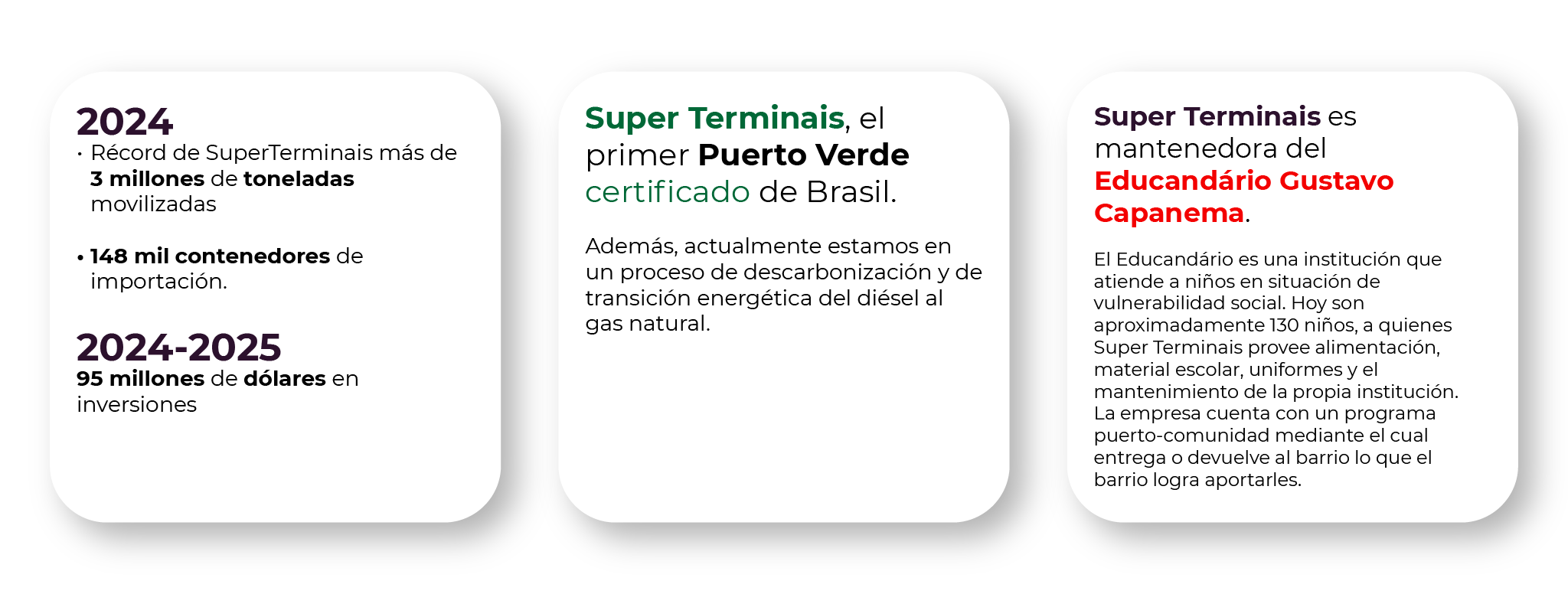 “Aunque Super Terminais tenga apenas 30 años, el grupo cumplirá 50 años en 2027. Ese es el secreto: creo que somos una empresa transparente, seria, con propósito, con procesos, que valora a sus empleados, su ubicación y el medio ambiente”.