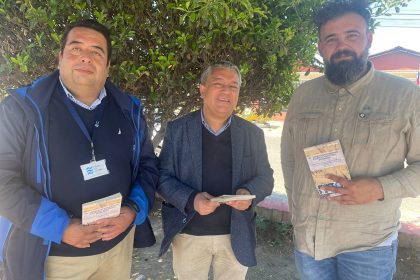 El-vicepresidente-de-Puerto-San-Antonio,-Renato-Silva,-junto-al-concejal-Manuel-Meza-y-al-dirigente-portuario-Jorge-Salazar,-durante-la-actividad-en-Villa-I