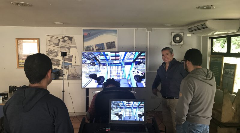 Luis Poggi, director de Future-Events, contó a PortalPortuario.cl que la tecnología es “un simulador que estamos utilizando en la capacitación de las grúas gantry STS. Es un simulador en tres dimensiones con el que te colocas los anteojos y puedes tener una experiencia real”.