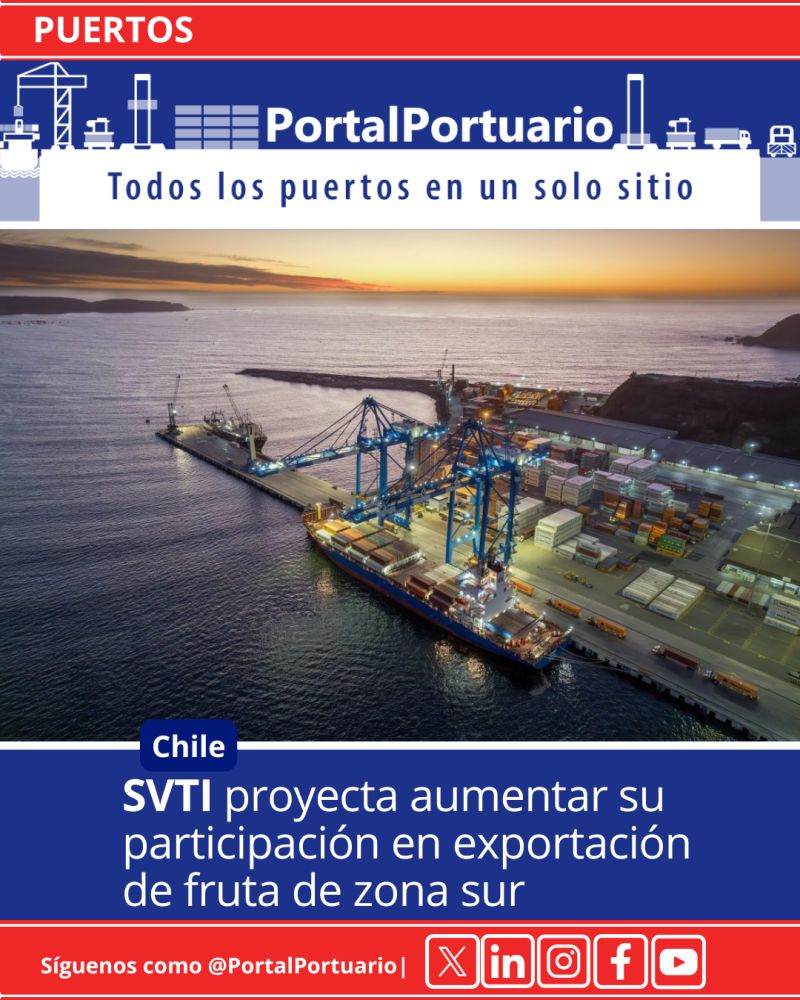 En 2024, SVTI manejó el 47% de los contenedores de fruta exportados en la Región del Bio Bio, manteniendo una participación del 41% en el primer semestre de 2025. Los productos más habituales son manzanas, seguido de berries y frutas congeladas.