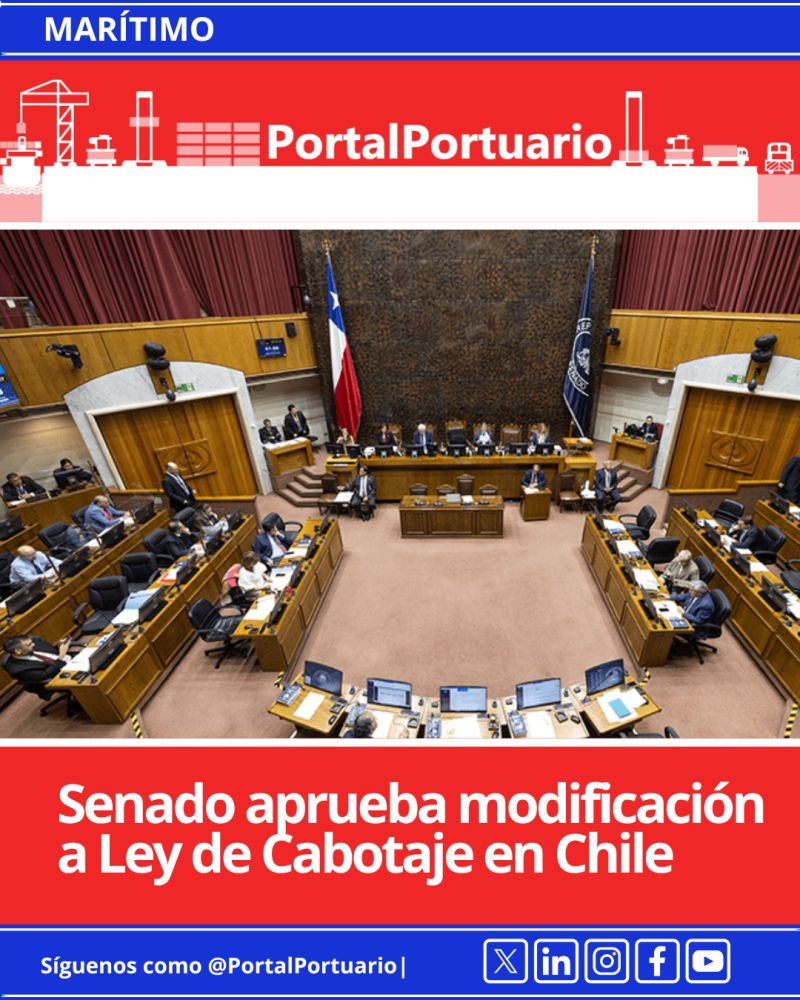Por su parte, el Senado chileno dio un paso legislativo en relación a la apertura parcial del cabotaje en el país. Esto fue aprobado en la Cámara Alta por 23 vostos a favor y dos en contra con la intención de modifica la Ley de Fomento a la Marina Mercante y la Ley de Navegación, con el objetivo de fomentar la competencia en el mercado del cabotaje marítimo.