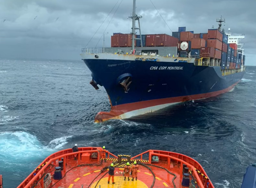 Remolcador Luz de Mar de Salvamento Marítimo rescatando al CMA CGM Montreal