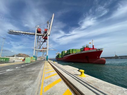 barco en muelle hub con grua JSV inaugura su terminal portuaria multipropósito HUB Portuario de Alicante