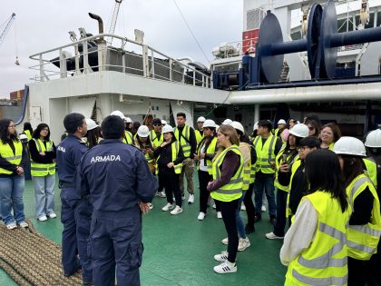 Durante la jornada, los estudiantes tuvieron la oportunidad de recorrer las instalaciones del Terminal Molo y visitar el buque de investigación de la Armada, Cabo de Hornos, que se encontraba atracado en el sitio 2.