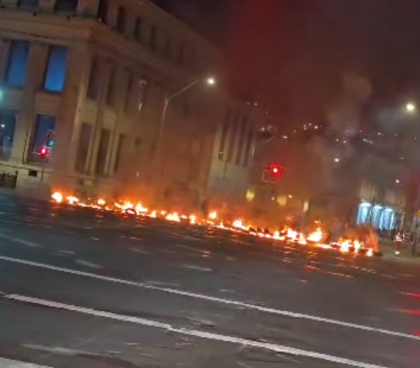 La situación -ocurrida pasadas las 00.00 horas de este 24 de septiembre- fue reportada por distintos usuarios de redes sociales que transitaban por la avenida Errázuriz y por la calle Blanco al momento de producirse las protestas. También hubo barricadas incendiarias en las inmediaciones del Sindicato de Estibadores.