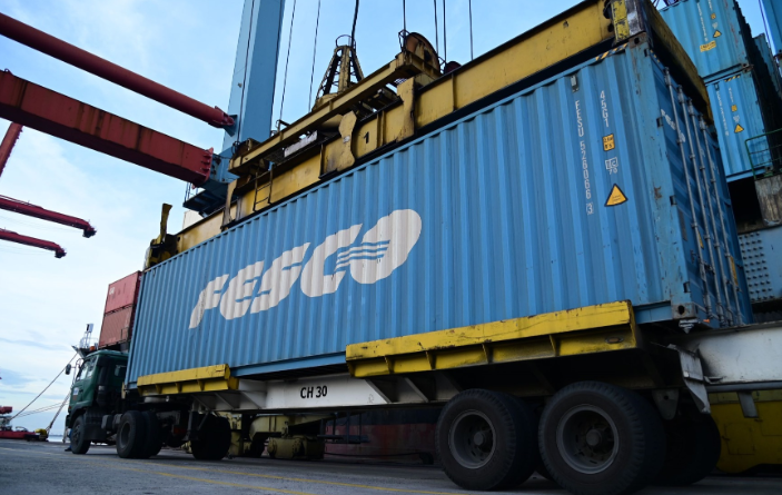 Fesco transporta contenedores en dirección de importación desde Sudáfrica a Novorossiysk mediante transbordo en los puertos de Nava Sheva o Jebel Ali (EAU), y a San Petersburgo a través del puerto indio de Mundra.