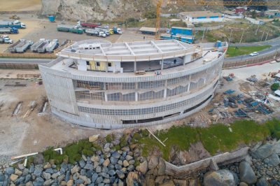 El nuevo edificio corporativo de Puerto San Antonio, emplazado en el sector de la expesquera Camanchaca, ya finalizó su etapa de obra gruesa.