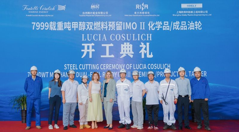 Fratelli Cosulich concretó la ceremonia de corte de acero del buque tanque químico Lucia Cosulich en el Astillero Taizhou Maple Leaf, China, con la presencia de Silvia Bordoni, gerente general de Fratelli Cosulich Bunkers.