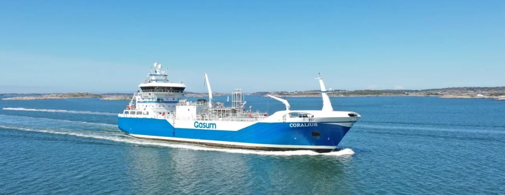 Gasum realizó un compromiso para aumentar su capacidad de suministrar GNL y BioGNL, por lo que al servicio del Coralius, que ya suma más de mil abastecimientos desde 2017, fletó un nuevo buque búnker que prestará servicio a sus clientes a partir de 2027.