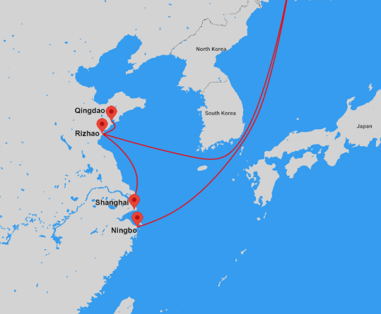 Está previsto que el buque haga su primera escala en el Puerto de Shanghái el 15 de agosto, seguido de Rizhao el 17 de agosto. Se espera que llegue a la terminal de Global Ports en Vrangel el 23 de agosto.