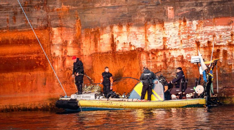 El buque mantiene en sus depósitos de combustible cerca de 938 mil litros de petróleo. Tras una inspección submarina por parte de un equipos de buzos, no se detectó la presencia de alguna fuga al mar.