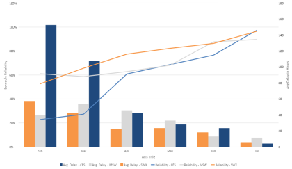 En el caso del recorrido Carribean Express (CES), se mejoró el indicador y pasó del 23% en febrero al 97% en julio, mientras que disminuyó el retraso promedio de 153 horas a 4. Las modificaciones aplicadas consideraron reemplazar Caucedo por Cartagena para mejorar la conectividad desde Guatemala y Honduras; London Gateway fue reemplazada temporalmente por Felixtowe, debido a la congestión de la terminal y el aumento de los tiempos de espera; y Rotterdam fue eliminado de la rotación.