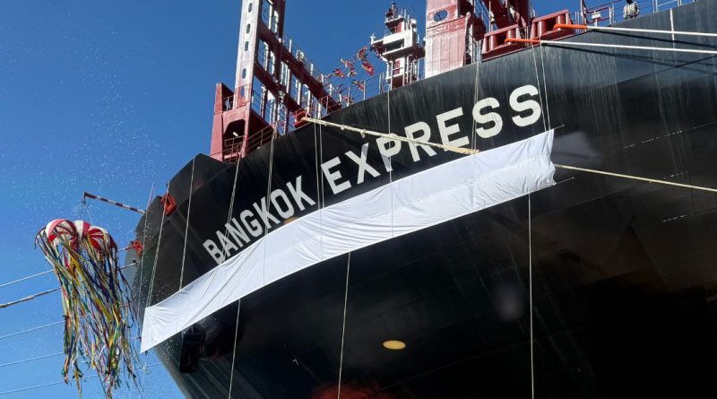 Una vez concluida la ceremonia, efectuada en las instalaciones del astillero Hanwha Ocean, el Bangkon Express -de 400 metros de eslora y 61 metros de manga- zarpó rumbo a Busan, Corea del Sur, en el marco de su viaje inaugural. “Le deseamos al capitán Alexander Meyer y a su tripulación vientos favorables y una navegación tranquila”, indicó la naviera alemana.