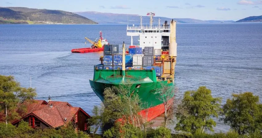 El carguero con bandera chipriota, el NCL Salten, tenía 16 personas a bordo y viajaba hacia el suroeste a través del fiordo de Trondheim hacia Orkanger cuando se desvió de su curso.