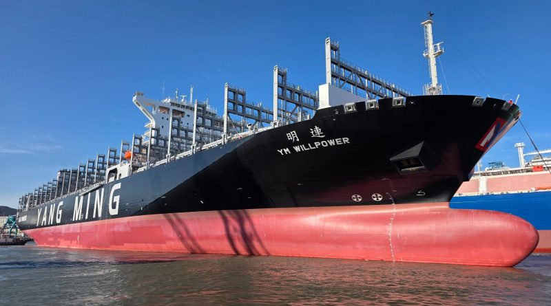 El YM Willpower de 15.600 TEU es el primero de cinco gemelos maxi neo-panamax con igual sistema que el astillero coreano tiene programado entregar a Yang Ming en 2026 y a comienzos de 2027, según dio cuenta Alphaliner.
