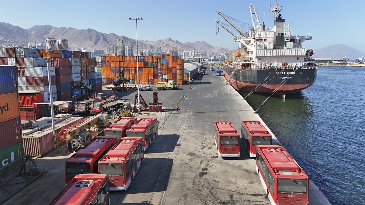 El Puerto de Antofagasta recibió un granelero tipo Ultramax en el Sitio N°2. La nave, registraba bajo el pabellón de Panamá, trajo consigo un embarque de 12 buses eléctricos que se integrarán al sistema público de transporte local.
