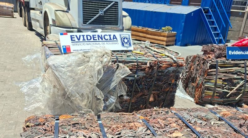 El Servicio Nacional de Aduanas informó sobre la incautación de 600 kilos de cable de cobre robado en el Puerto de Arica. Los funcionarios de la entidad pública evitaron el contrabando de seis fardos de chatarra del metal cuyo destino final era Corea del Sur.