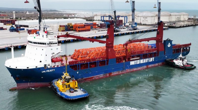 El buque UHL Felicity arribó a la terminal portuaria con los componentes de las nuevas grúas Liebherr P180 L-S, cuyo montaje está programado para completarse durante el primer trimestre de este año. Posteriormente, las unidades entrarán en su fase de pruebas operativas y evaluación de desempeño para integrarse formalmente al esquema de atención de buques antes de concluir el segundo trimestre.