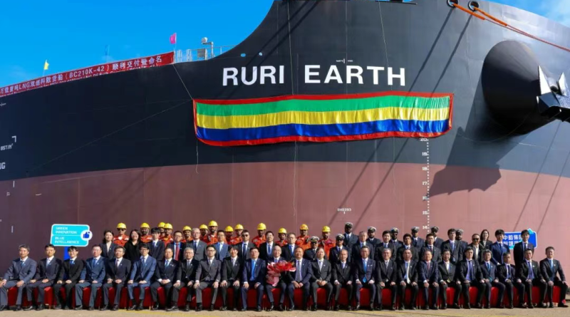China State Shipbuilding Corporation Beihai Shipbuilding, en colaboración con China Shipbuilding Trading Co., Ltd. (CSTC), entregó y bautizó del cuarto granelero de doble combustible de GNL de 210.000 TPM, llamado Ruri Earth, construido a medida para la compañía Mitsui OSK Lines (MOL).